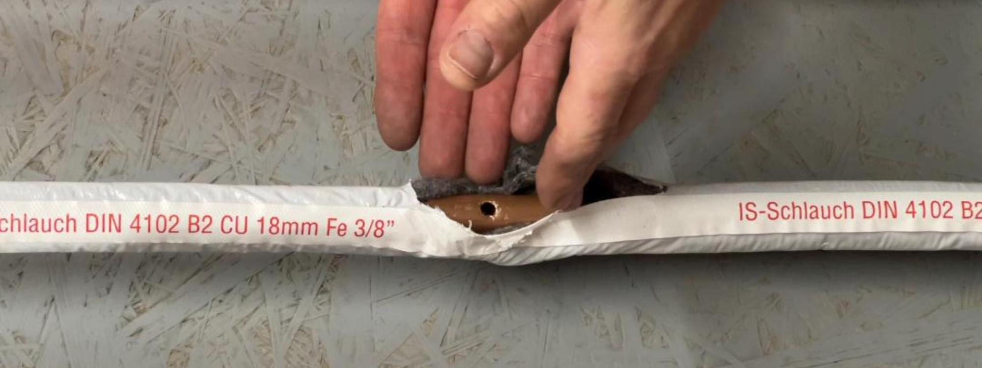 8. Rohr auf Dichtheit überprüfen und Stelle nachisolieren (siehe dazu Rohrbruch beim Mehrschichtverbundrohr)