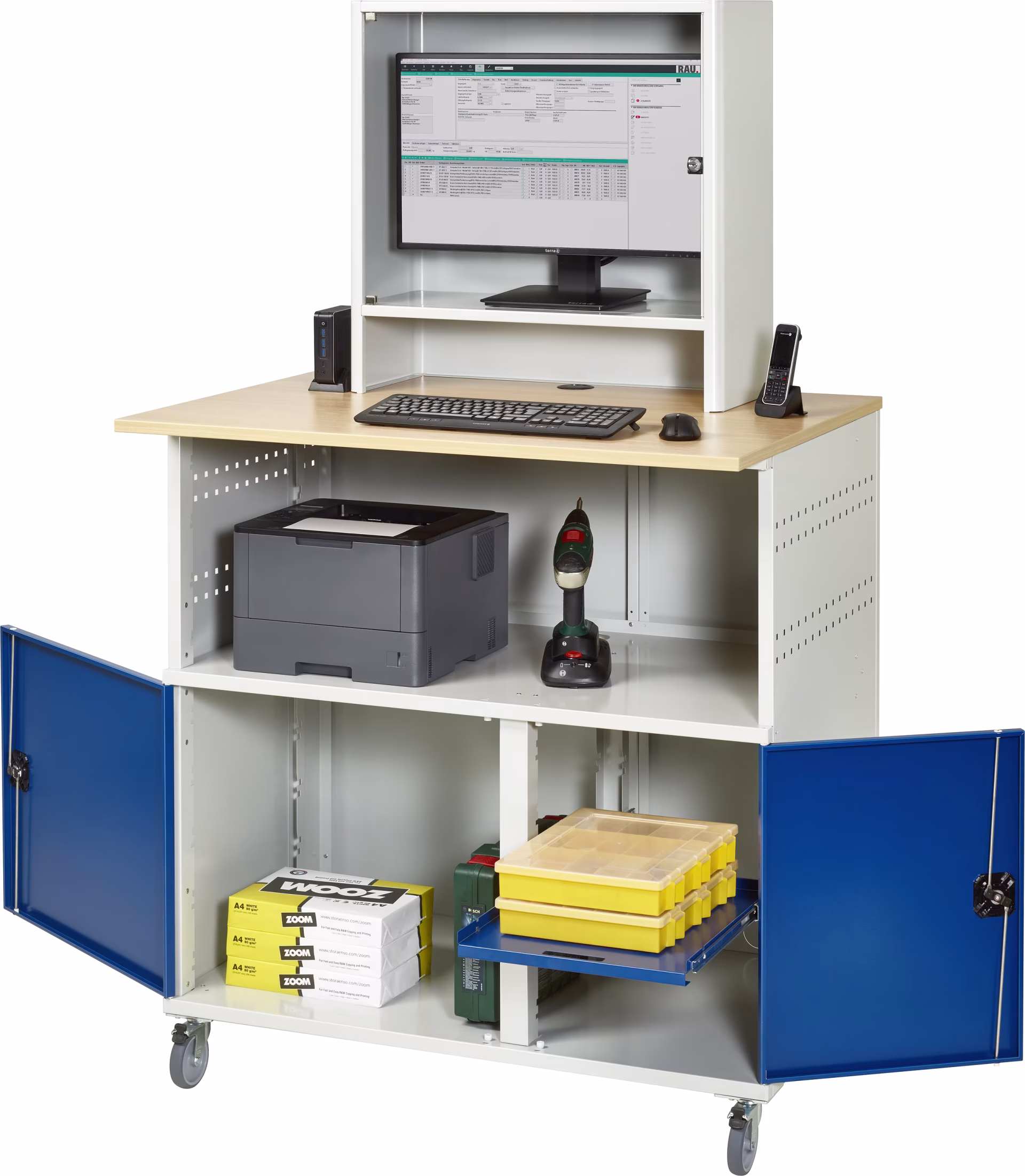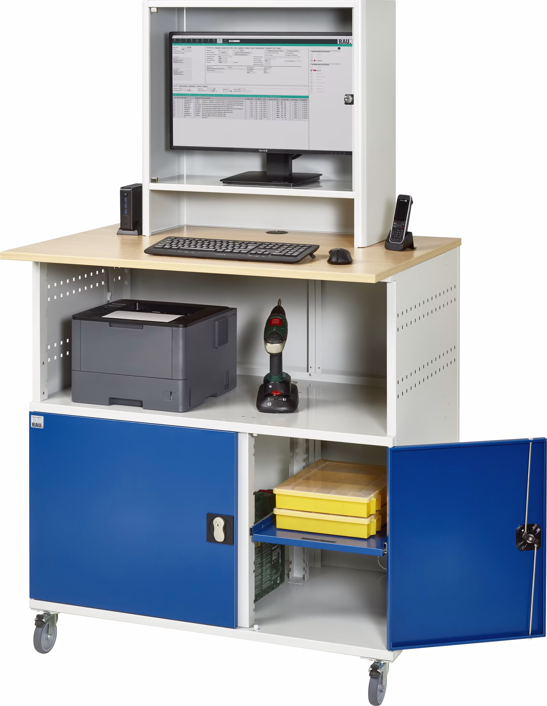 Computer-Tisch 1023 mit Monitorgehäuse T300mm, B1100xT790xH1890mm, mobil