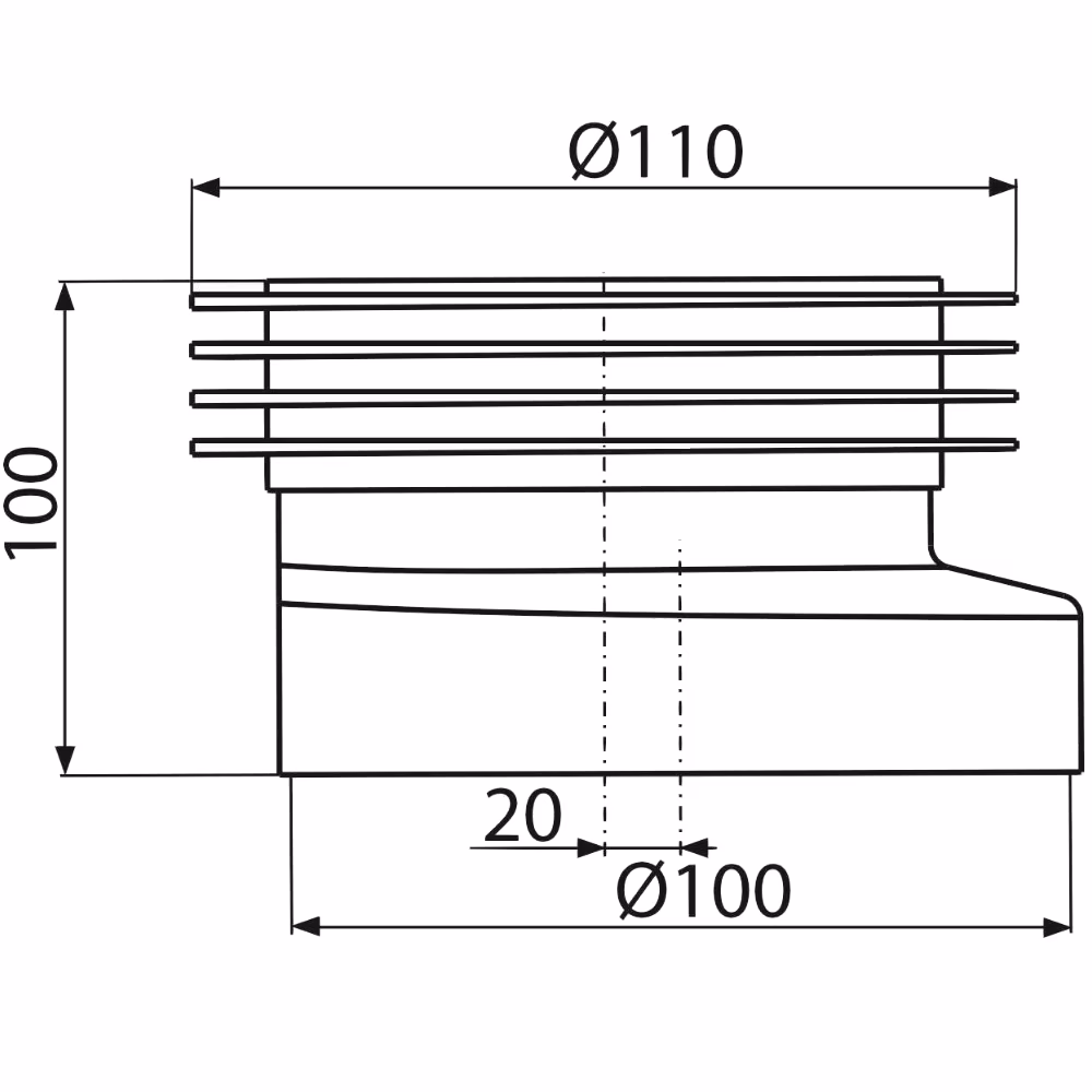 Manchette de raccordement WC avec excentrique. 20 mm de décalage