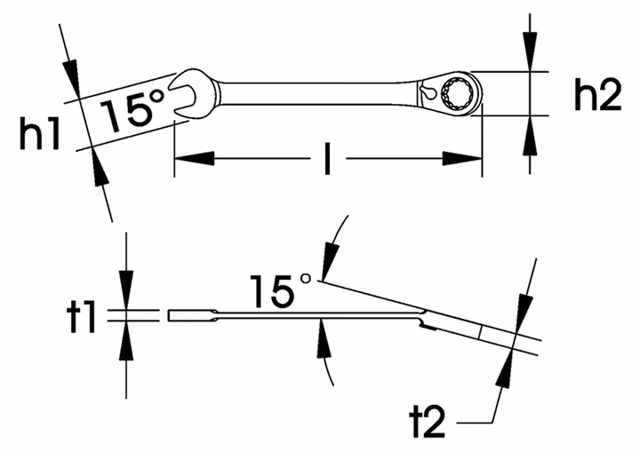 Info sui prodotti "Chiave aperta con cricchetto a leva, reversibile, ELORA-204-J 6 mm"