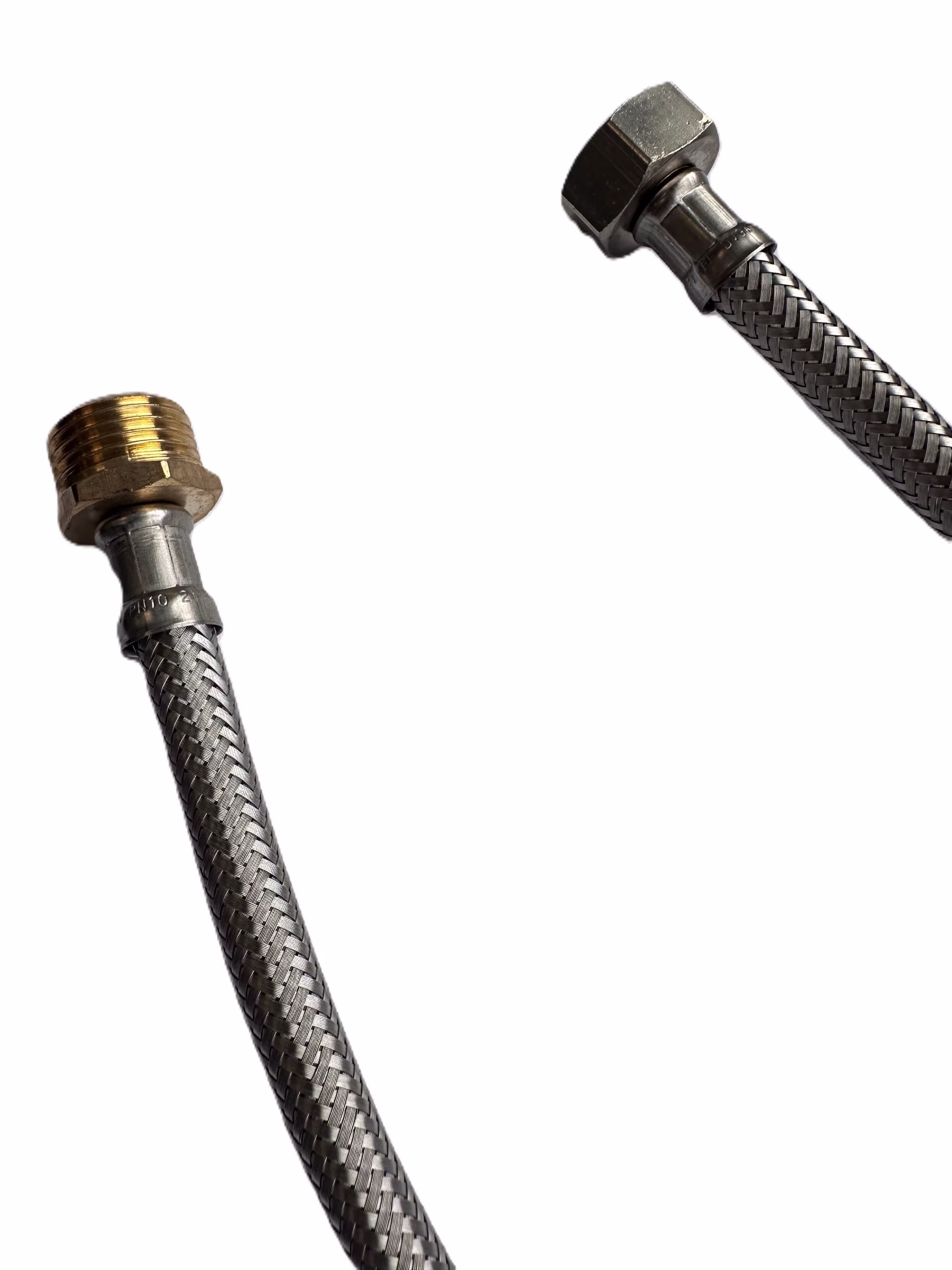- Tubo di collegamento flessibile rinforzato in acciaio inox con tubo interno